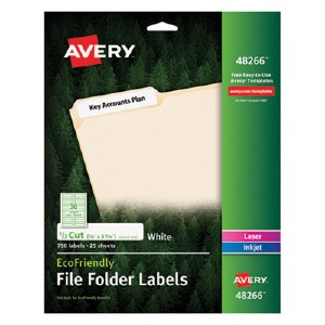 Avery EcoFriendly Multipurpose File Folder Label - Permanent Adhesive - "0.67" Width x 3.44" Length - 30 / Sheet - Rectangle - Inkjet, Laser - White - Paper - 750 / Pack (48266) (AVE48266) pg.1067.