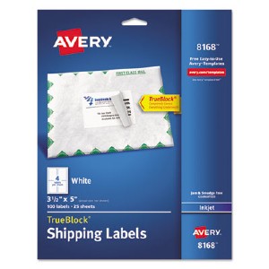 Avery® Shipping Labels with TrueBlock Technology - Permanent Adhesive - 3 1/2" Width x 5" Length - Rectangle - Inkjet - White - 4 / Sheet - 100 / Pack (08168) (AVE8168) pg.1060.