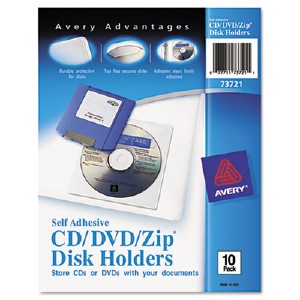 Avery Self-Adhesive Media Holder - 1 x CD/DVD Capacity - Clear - Vinyl - 10 / Pack (73721) (AVE73721) pg.745.