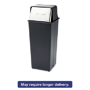 Safco Reflections 21-Gallon Push Top Receptacle - 21 gal Capacity - Rectangular - 37.5" Height x 14" Width x 14" Depth - Steel, Polyethylene, Vinyl - Chrome, Black (9893) (SAF9893) pg.1587.