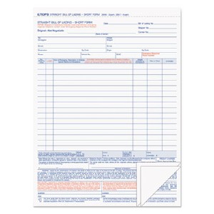 TOPS Snap-off Bill of Lading Form - 3 Part - Carbonless Copy - 11.44" x 8.50" Form Size - 2 x Holes - White Sheet(s) - Blue, Black Print Color - 50 / Pack (3846) (TOP3846) pg.991.