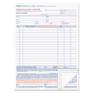 TOPS Bill of Lading Snap-Off Set - 4 Part - Carbonless Copy - 8.50" x 11.44" Sheet Size - White Sheet(s) - Light Blue, Blue, Red Print Color - 50 / Pack (3847) (TOP3847) pg.991.
